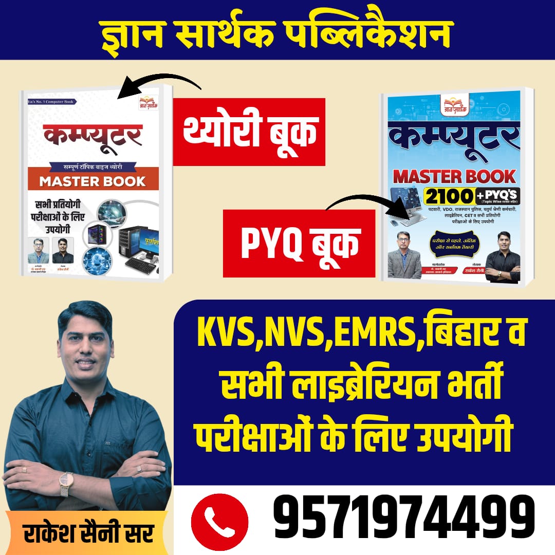 राकेश सैनी सर का संदेश जरूर पढे यह पुस्तक पटवारी ,VDO, लाइब्रेरियन , राजस्थान पुलिस कांस्टेबल , दिल्ली पुलिस कांस्टेबल , SSC-CGL , 3rd ग्रेड सूचना तकनीकी,CET व सभी परीक्षा के लिए उपयोगी हे विधार्थियो की सलाह दी जाती है की राकेश सैनी सर का नाम व फोटो देख कर ही पुस्तक ख़रीदे अब तक राकेश सैनी सर की अनेक पुस्तके पब्लिश हो चुकी हे लेकिन राकेश सैनी सर की अब तक की यह सर्वश्रेठ पुस्तक हे इस पुस्तक मे सभी परीक्षा के पाठ्यक्रम की ध्यान मे रख कर सम्पूर्ण टॉपिक के (Previous Year Question) प्रश्नो का समावेश किया गया हे साथ ही पुस्तक की प्रिंटिंग गुणवत्ता (Color printing)को ध्यान मे रखते हुए अच्छे पेपर का प्रयोग किया गया हे इसमे कुल 356 (A4) पेपर हेI